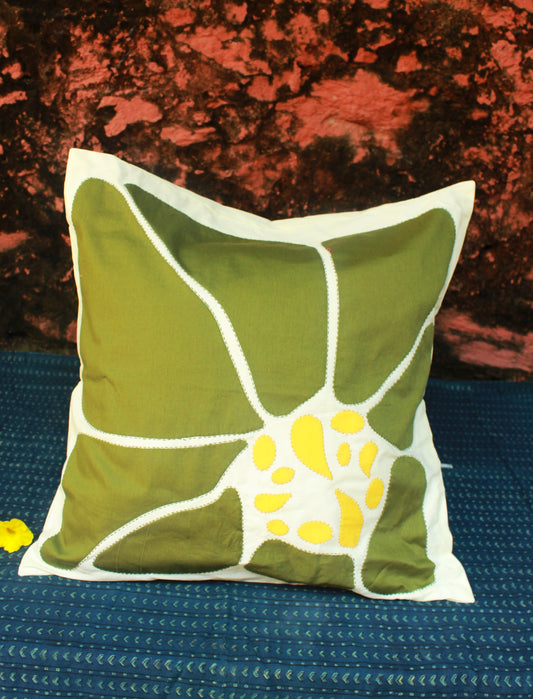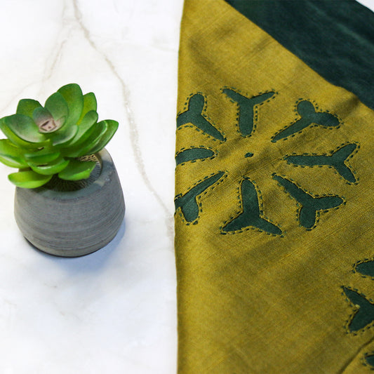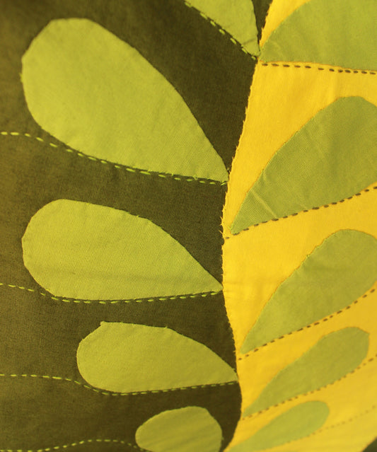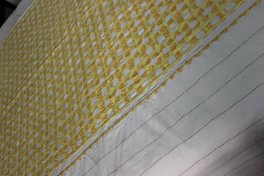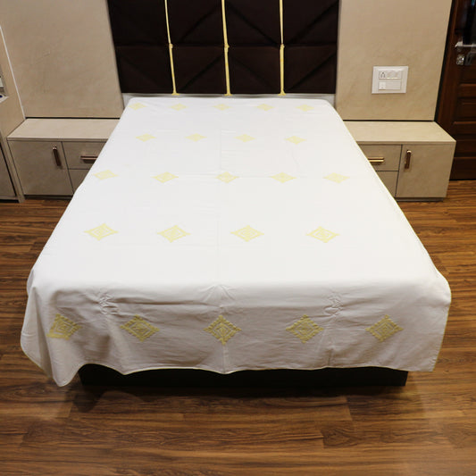 Square Pattern Applique Work Bedcover - Yellow Mustard