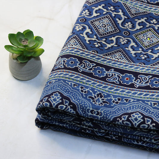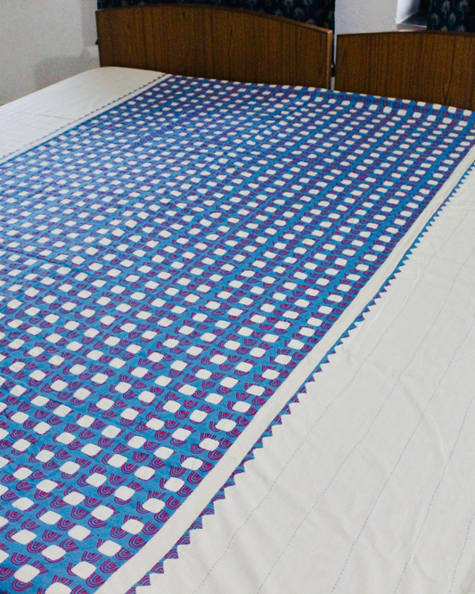 Handcrafted Ajrakh Print Double Bedcover - Blue