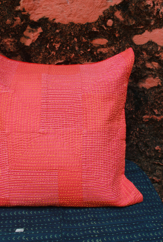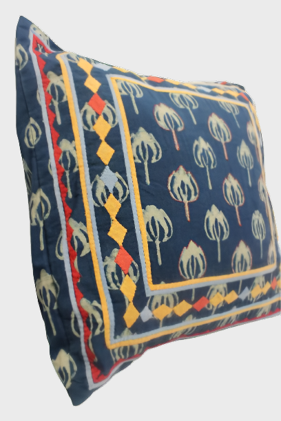 Sadhna's bedsheets and pillows are made from eco-friendly materials and handcrafted by the artisans of Mewar, Rajasthan, using traditional techniques like patchwork, appliqué, and Tanka embroidery, ensuring luxury, comfort, and sustainability.