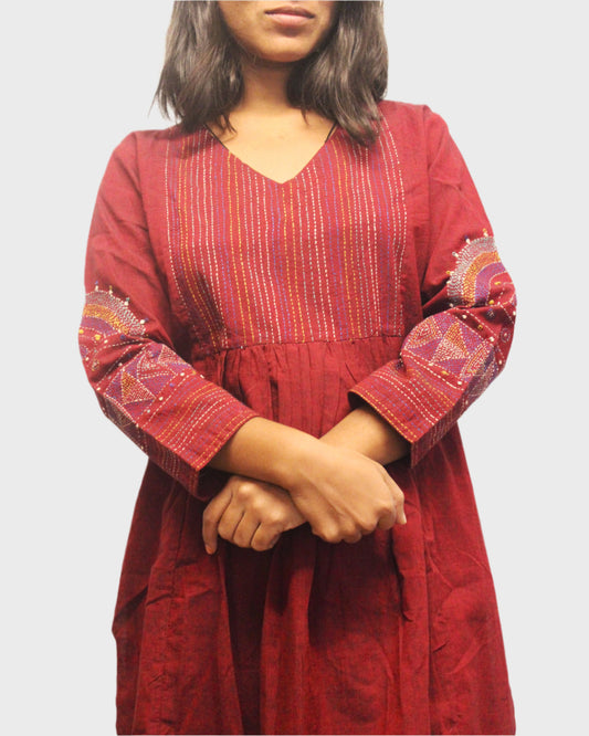 Discover Sadhna's women's tops and women's pants, designed for always on-trend looks, style, and ultimate comfort. Whether you're planning a night out, running errands, or enjoying casual weekends, Sadhna has you covered with its versatile cotton pleated pants, elegant Noor applique silk top, or chic silk short kurti. Each unique piece of women's clothing is handwoven by skilled artisans from Rajasthan Mewar, ensuring sustainability in every stitch and promoting truly sustainable fashion. Our handwoven tops and handwoven pants feature sleek cuts, fresh colors, and a mix of tailored and relaxed fits, making them ideal wardrobe essentials that offer you the freedom to move and play in style. Choose Sadhna for your next stylish top or comfortable pants, and embrace ethical artisan-made clothing.