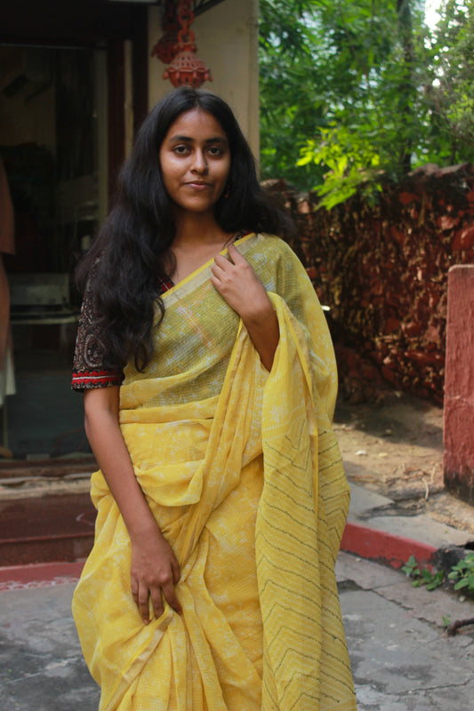 Discover affordable handcrafted sarees and blouses by Sadhna, a Women's Handicraft Enterprise. This collection of Artisan-Made Sarees & Blouses offers timeless, sustainable elegance. Each saree and blouse is intricately handcrafted by women artisans of Rajasthan, capturing the romance and artistry of Indian heritage. These beautiful sarees are made from breathable fabrics like silk, cotton, and muslin, infused with natural dyes, and feature the rhythmic geometry of dabu prints and delicate floral handwork. Explore Sadhna's unique collection of handcrafted sarees and blouses that embody sustainable and ethical fashion.